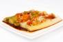 Salmoi, patatak ta piper orlegi saltsa Salmón